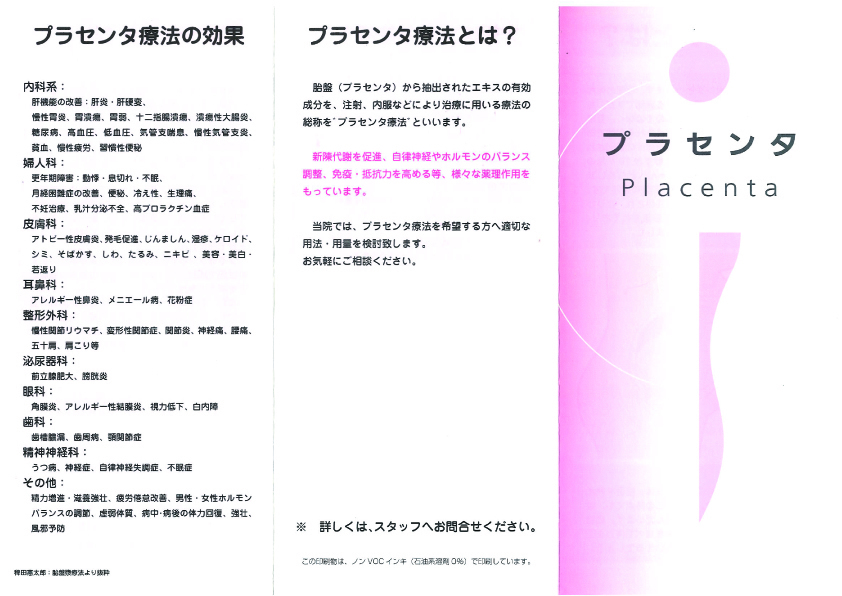 プラセンタとは胎盤のことで、ヒトの胎盤から生理活性成分を抽出した薬剤を注射することで、様々な効果が期待されます